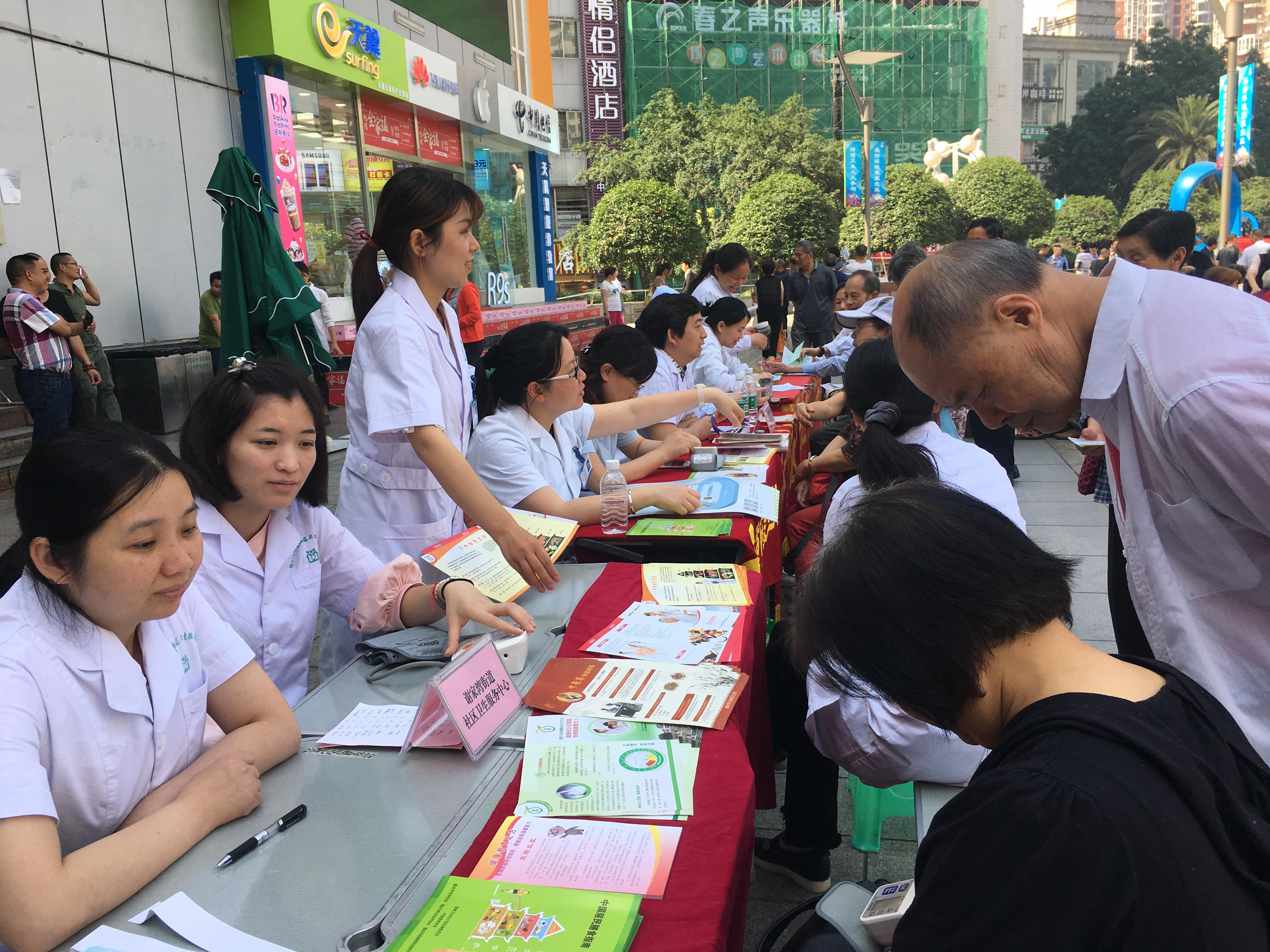 2017年5月17日上午,由九龙坡区卫生计生委、营养与慢病专委会主办,九龙坡疾控中心、健教所承办的“全民营养周”活动在杨家坪步行街文化广场开展,辖区10余家基层医疗单位也积极参加了此次宣传活动。本次活动秉承“健康中国、营养先行”的口号,围绕《中国居民膳食指南(2016版)》、慢性病营养知识开展宣传活动。