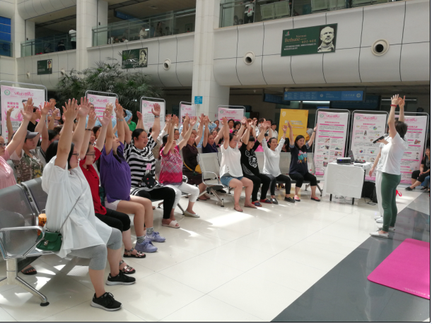 图6.2018.5.16西南医院门诊大厅现场瑜伽指导1