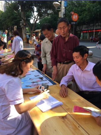 活动现场设立宣传点,向过往群众发放“《中国居民膳食指南》(2016)”、“合理膳食”、“控制体重”、“心理平衡”、戒烟限酒等宣传资料,并向大家介绍肥胖是很多疾病的诱因,如高血压、脂肪肝、2型糖尿病、血脂异常和冠心病等,目前并没有先进的技术可以治疗肥胖,最关键的就是自律,做到吃动平衡,养成健康的生活方式,活动现场悬挂宣传横幅1条,宣传海报1幅,发放各种宣传资料5种、合计800余份,义务测量血压和接受健康咨询150余人次。
