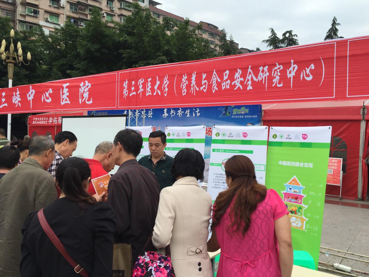 2016年全民营养周,重庆市营养学会助力忠县,在忠州广场开展营养宣传科普活动,第三军医大学专家现场宣讲新版膳食指南。