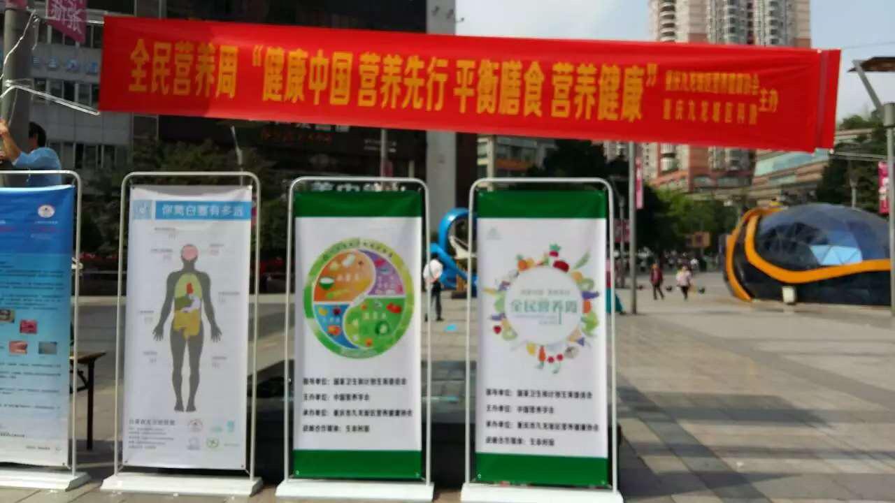 2016全民营养周,重庆市营养学会在重庆九龙坡区杨家坪步行广场开展营养知识宣传科普和现场咨询系列活动。