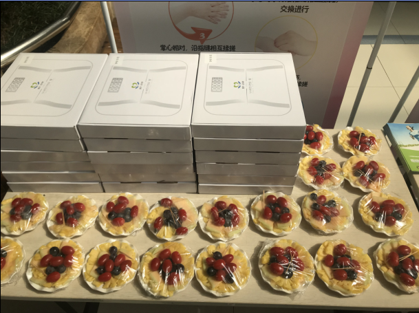 图15.2018.5.16西南医院门诊大厅活动准备的果盘及体重秤