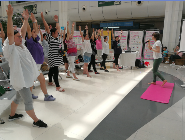 图6.2018.5.16西南医院门诊大厅现场瑜伽指导1