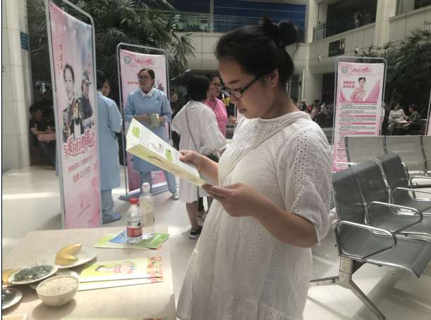 图13.2018.5.16西南医院门诊大厅正在阅读宣教资料的孕妈妈