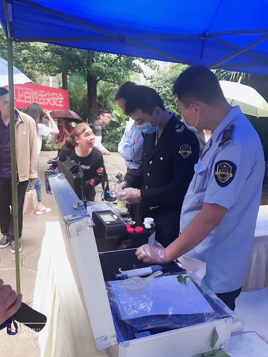 图3.大石坝社区食物快检 图4.大石坝社区宣讲