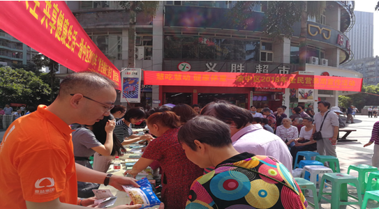 重庆市营养学会食品安全与标准专委会渝中片区围绕重庆市2018全民营养周活动,在石油路街道华宇渝州新都小区广场开展了“慧吃慧动,健康体重”为核心的主题宣传活动(图文)