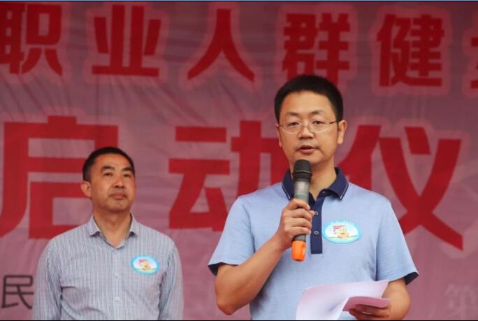 区卫生计生委党委副书记何斗锡主持启动仪式。区总工会副主席邓明成宣读《“日行万步,健康中国” 倡议书》,倡议政府, 落实 “健康中国”战略 , 主导普及健康生活方式。倡议广大公众,日行万步,做自己健康的第一责任人。
