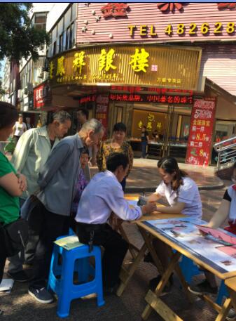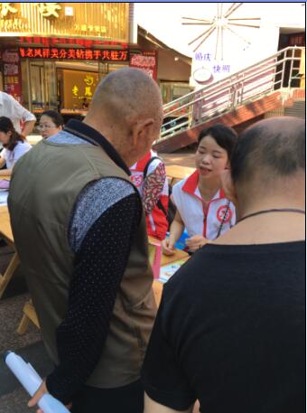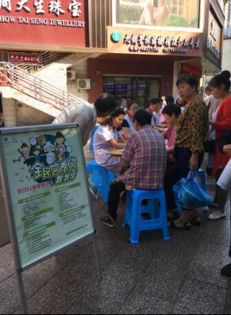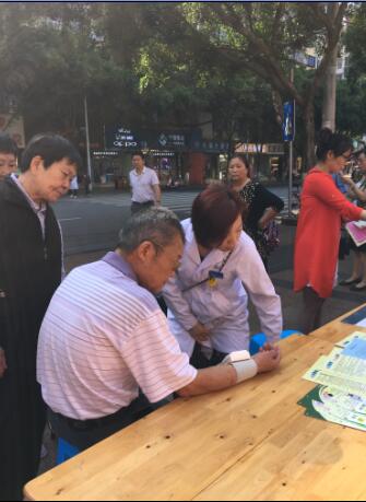 活动现场设立宣传点,向过往群众发放“《中国居民膳食指南》(2016)”、“合理膳食”、“控制体重”、“心理平衡”、戒烟限酒等宣传资料,并向大家介绍肥胖是很多疾病的诱因,如高血压、脂肪肝、2型糖尿病、血脂异常和冠心病等,目前并没有先进的技术可以治疗肥胖,最关键的就是自律,做到吃动平衡,养成健康的生活方式,活动现场悬挂宣传横幅1条,宣传海报1幅,发放各种宣传资料5种、合计800余份,义务测量血压和接受健康咨询150余人次。