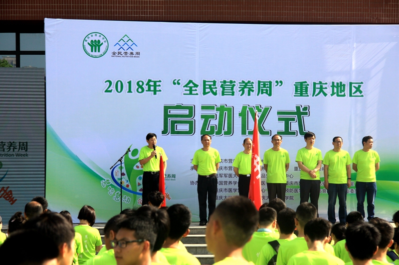 5月13日上午,2018年“全民营养周”重庆地区启动仪式在重庆大学虎溪校区隆重举行,本次活动在重庆市科协的指导下,由重庆市营养学会、重庆大学主办,重庆市营养学会运动营养专业委员会、重庆大学生命科学学院、陆军军医大学营养与食品安全研究中心(重庆市科普基地)承办,中国营养学会营养转化医学分会、重庆市营养与食品安全重点实验室、重庆市医学营养研究中心、重庆市预防医学会营养与食品卫生专业委员会、重庆大学新闻学院、重庆大学体育学院协办。旨在认真落实《“健康中国2030”规划纲要》要求,围绕“吃动平衡、健康体重”的主题,以“慧吃慧动、健康体重”为口号,组织近百位重庆市营养专家和志愿者宣传“吃动平衡、健康体重”的理念,现场活动包括健康跑、专家咨询、身体素质检测、科普视频播放、科普手册发放等项目,现场气氛热烈,共为近400名教职员工提供科学营养指导。中国营养学会常务理事、营养转化医学分会主任委员、重庆市营养学会理事长糜漫天,重庆大学科技处副处长、科协秘书长刘敢新,重庆市营养学会副理事长、重庆大学生命科学学院院长李正国等领导出席启动仪式。
